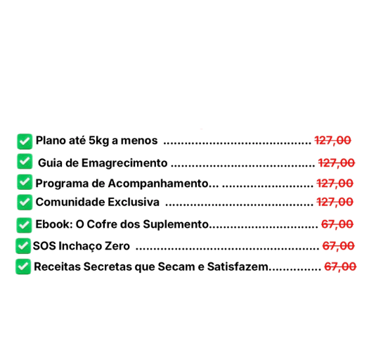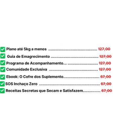 Se você seguir 100% do plano, você também irá desinchar, perder medidas, e limpar do seu organismo as toxinas que travam o metabolismo, consequêntemente: barriga seca!