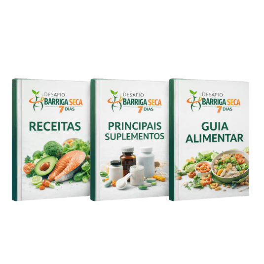 Um material completo com receitas, sugestão de cardápio e suplementos para desinchar o seu corpo
